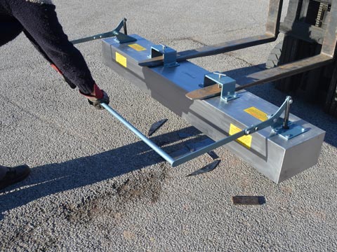 Balai magnétique special chariot élévateur Spécifiquement manufacturé pour les chariots élévateurs. Les fourches glissent dans les étriers montés sur l'aimant et les écrous de serrage permettent la fermeture à clef manuellement. Idéal et facile d installation et de Conception robuste. La surface magnétique est facilement nettoyable manuellement. Ne craint pas la corrosion.